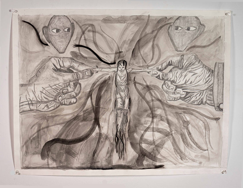 Encre à base d'alcool, crayons de bois et crayons à peinture sur papier